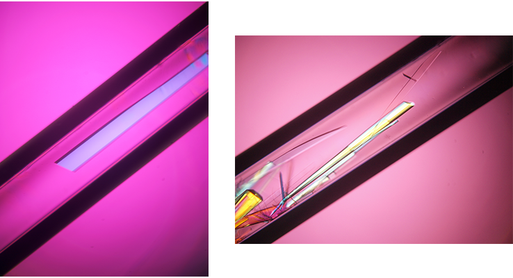 Figure 1 Protein crystals of amylase produced in the ISS (left) and on the ground (right) ©JAXA/Maruwa Foods and Biosciences