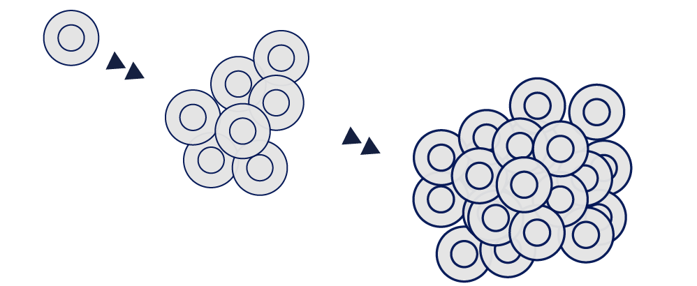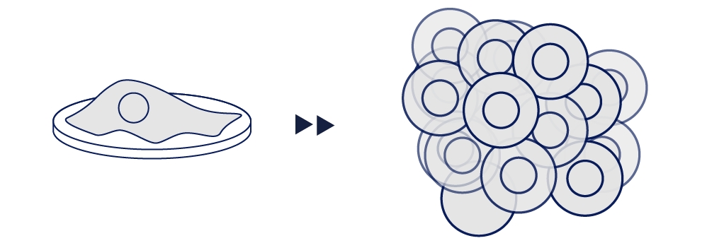 微小重力環境では、「沈降」や「対流」が起こらないので、細胞は自然に凝集して立体的な構造を形成します。これは細胞がヒトの体内に近い環境と考えられており、複雑な細胞組織の構築や、細胞同士のコミュニケーションなどを理解する、新しい手段になると考えられます。