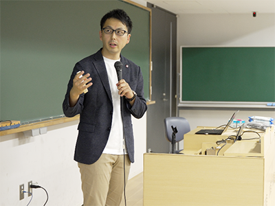 Space BDのISSプラットフォーム事業 事業ユニット統括 山崎より、宇宙産業が官から民への動きが加速している背景から、宇宙の商業利用とポストISS時代を見据えた国際宇宙ステーション(ISS)のビジネスの可能性について講義を行いました。学生からは、宇宙産業におけるベンチャー企業の意義などについて質問があり、民間のベンチャー企業だからこそ宇宙利用加速化の実現可能性があることを学びとして得ていただきました。