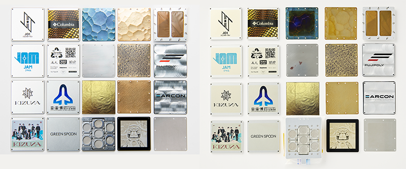 一部対象品:(左)打上げ前 (右)宇宙空間に曝され、地球帰還後