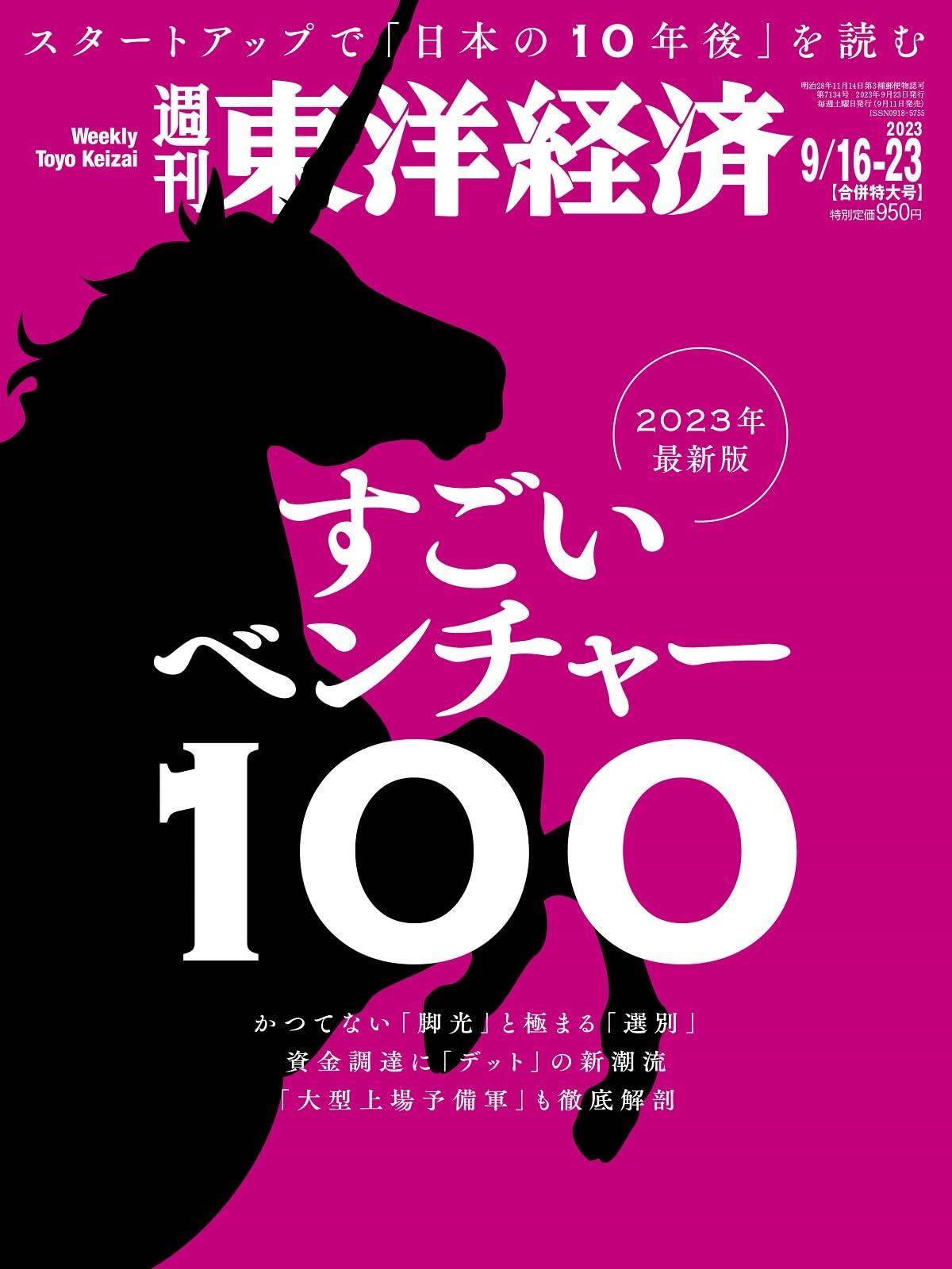 9月11日発売の『週刊東洋経済』9月16日・23日合併号で特集されている「すごいベンチャー100 2023年最新版」に、当社が選出されました。