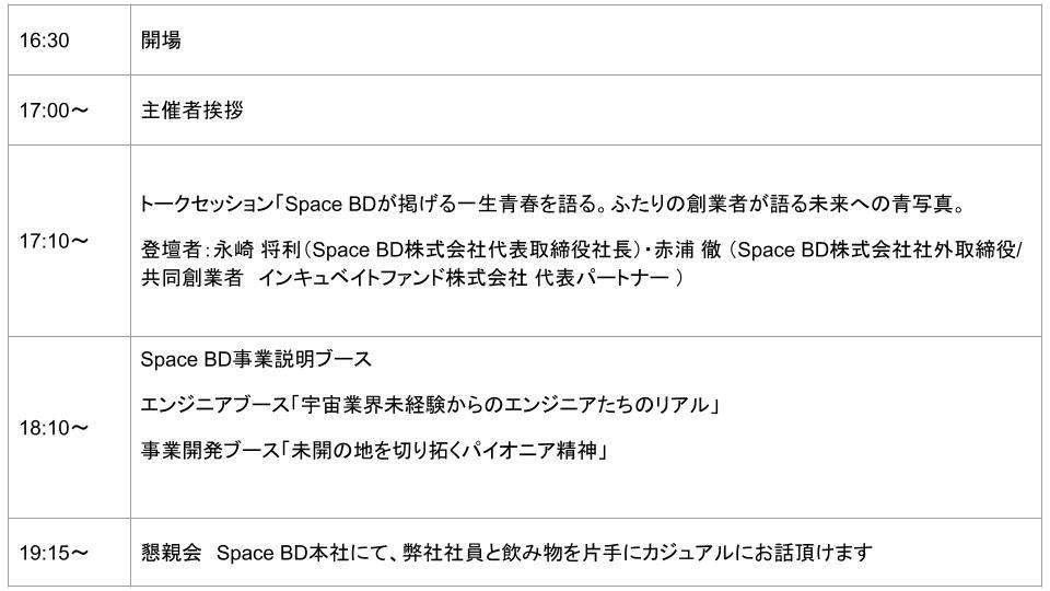 今回、様々な業界の人材交流を目的としたイベント「Space BDジョブフェス」を初めて開催する運びとなりました。ジョブフェスでは、Space BD株式会社 代表取締役社長 永崎 将利とSpace BD株式会社 社外取締役・共同創業者 / インキュベイトファンド株式会社 代表パートナー 赤浦 徹による当社が目指すことや事業内容をお話しするセッションパートに加え、「フェスティバル(お祭り)」をコンセプトに、楽しみながらSpace BDのカルチャーをリアルに皆さんに知って頂く機会を提供します。