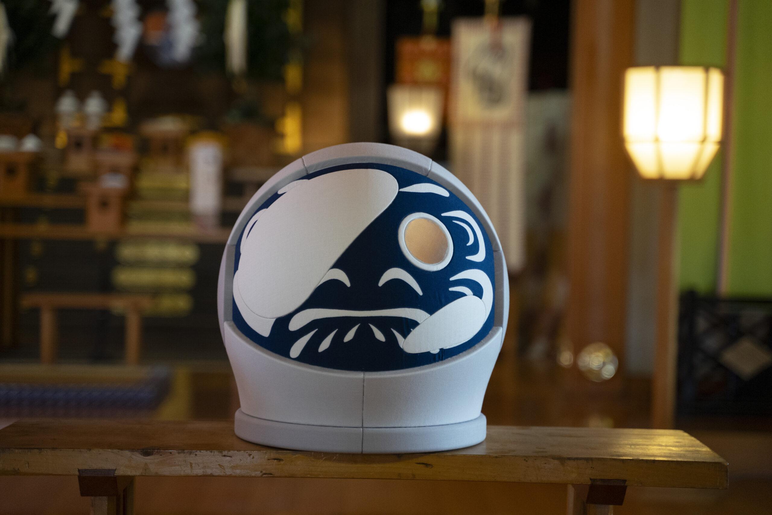 また、当日は、プロジェクト紹介の1つとして、UCHU DARUMA(宇宙ダルマ)(※1)を会場に展示いたします。デザインは、宇宙飛行士のヘルメットをモチーフにしており、その目の部分には実際に宇宙空間に曝露されたプレートが取り付けられています。